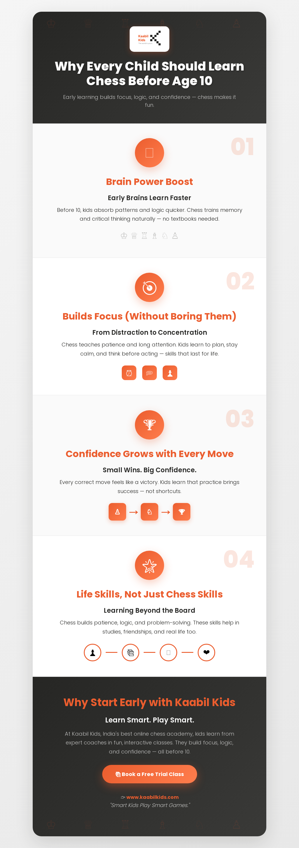 This infographic from Kaabil Kids, a leading online chess academy for kids, explains how chess improves memory, patience, and focus in children.